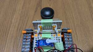 ブラックキャップをセットする様子を以下に示す。赤いボタンを押すとセット用コマンドが実行され、サーボモータが90度回転し,板が固定される。