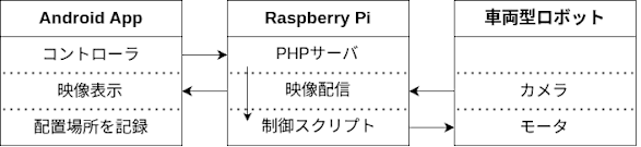 車両型ロボットにはRaspberry Piを搭載しており,PHPサーバをたてている。次のスクリプトを実行することで,対応するコマンドを実行できる。
