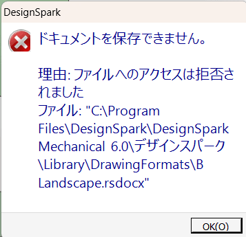 図面を保存しようとすると、上のようなエラーで保存できない現象が発生していました。v6.0.2にて修正済みです。