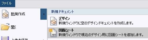 - ファイル > 新規作成 > 図面シートをクリックし、図面を作成します。