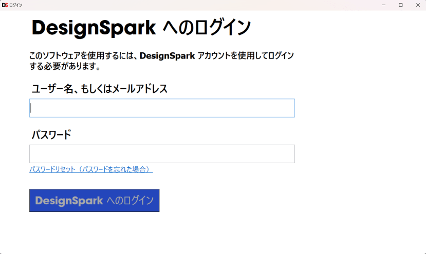 DSMechのインストールが終わり、初めて起動すると以下のようなログイン画面が表示されます。
