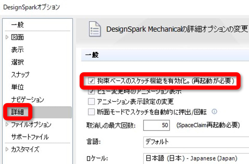 ファイルタブ > Designspark オプション > 詳細