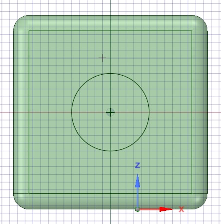 24. 在立方体的中心点上左键单击草图光标,按住并拖动到 10 mm 直径,然后松开。