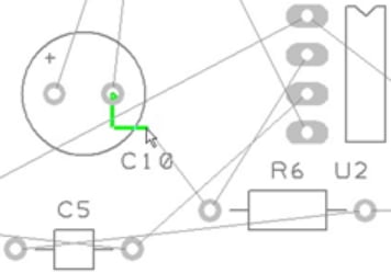 トラックを追加するには、端子と端子を結ぶ黄色い線(ラッツネスト)をダブルクリックします。この方法が最もすばやく配線を開始するための方法ですが、他の方法でも開始できます。