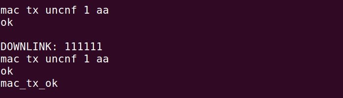 The only difference between this and the uplink-only test is that we now look for the RN2483 returning the string “mac_rx” and upon finding this, extract and print the downlink message.