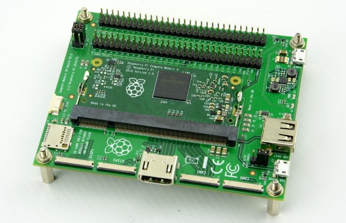 There is no shortage of IO on the Compute Module and in addition to HDMI, DPI, 4x camera interfaces and two each of I2C, SPI, UART and SDIO interfaces, there are also 48x GPIO pins. In our case all we need is a single UART to interface the RN2483 LoRaWAN module, but a finished product might have buttons, power supply monitoring or other features that create additional value.