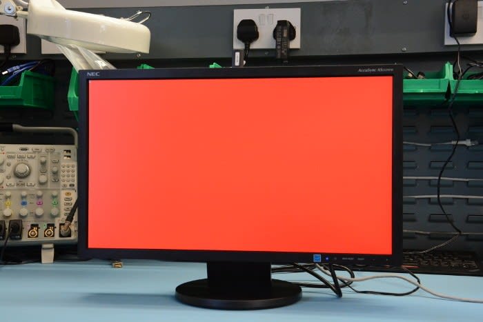 Adafruit provide an excellent tutorial for getting started with Pygame and above can be seen the first test of this, which simply paints the screen red. Rather than repeat details of how this works here, I would recommend heading over to the Adafruit website.