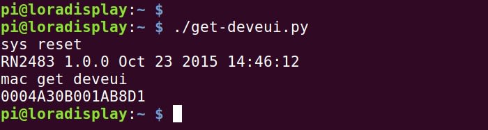 A Python script was used to get the DevEUI for the RN2483 module, but a terminal emulator could have been used instead and the command is simply: