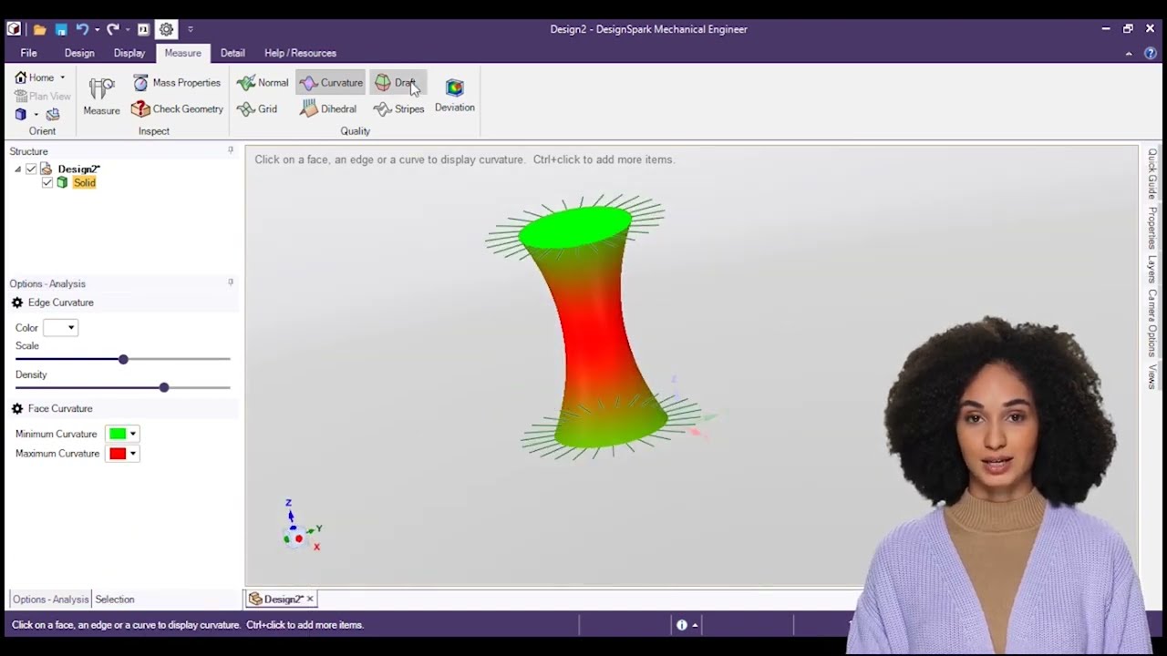 Measure and quality tools (check mass properties, draft angles, curvature, deviation, etc.)