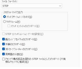 SolidWorks2023でモデルをSTEPでエクスポートしました。エクスポートの設定は下記の通りです。