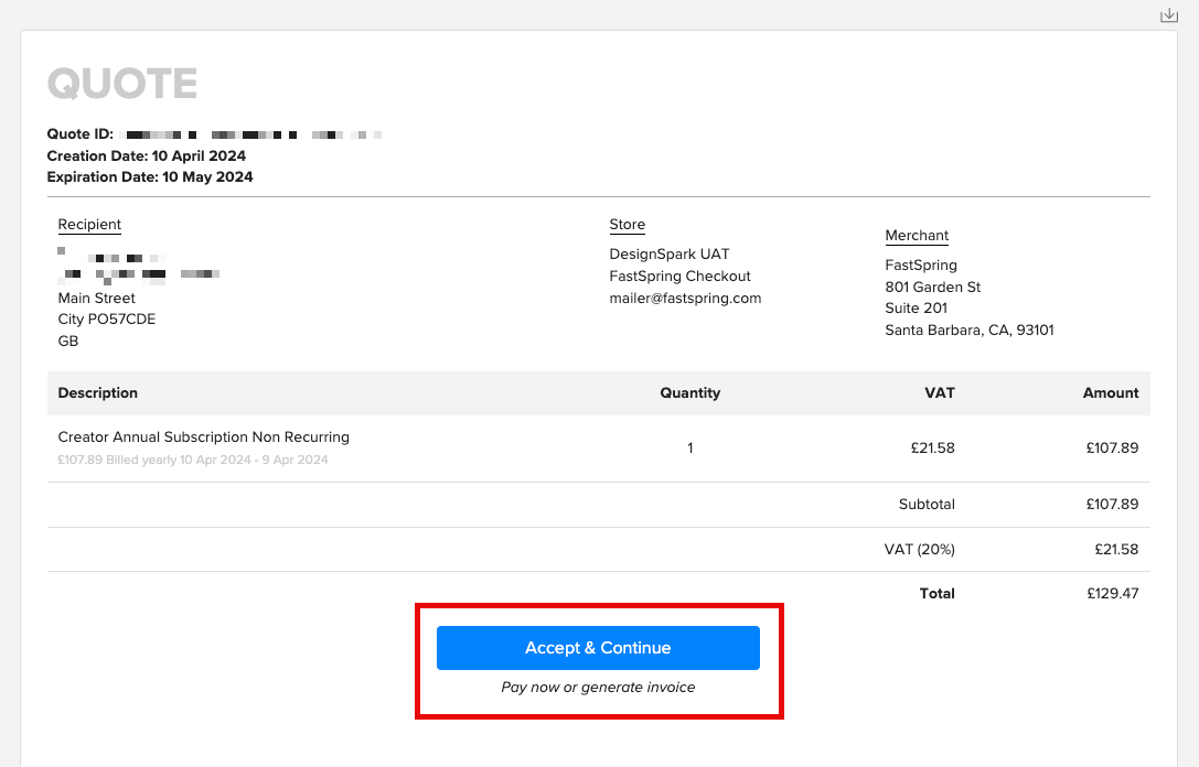 また海外ユーザの方でVAT/GSTインボイスの情報を更新したい場合、更新する情報を、決済代行会社である (FastSpring®) に連絡してください: