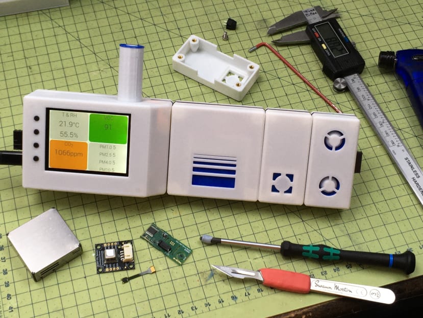Il y a une ironie merveilleuse dans le fait que je travaillais dans mon atelier de 2x2x2m sur ce projet sur la qualité de l'air, et que j'avais des maux de tête à force de m'asseoir dans des appels de zoom, comme on le fait dans la nouvelle normalité du travail à domicile depuis 2021. Pourtant, ce n'est que lorsque j'ai acheté un moniteur de qualité de l'air de bureau que j'ai réalisé qu'habituellement, après une heure passée à l'intérieur avec la porte et les fenêtres fermées, la lecture indiquait « très malsain ». Je me suis rendu compte que le CO2 atteignait des niveaux très élevés, mais j'ai honnêtement supposé que c'était surtout le fait d'avoir trop d’appels de zoom qui en était la cause.