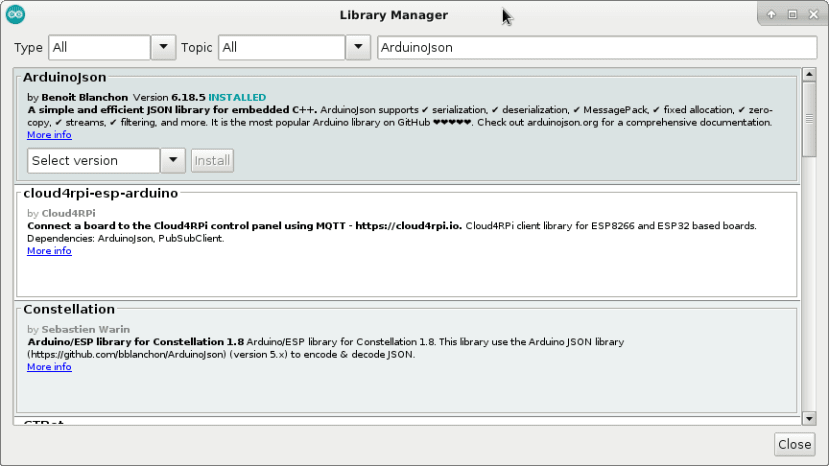 コードを書き写してカナリアにアップロードする前にライブラリマネージャーを使用していくつかのライブラリをインストールします: