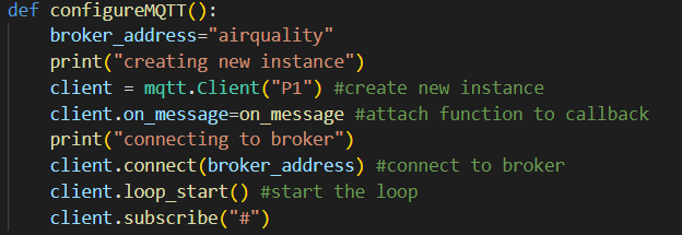 Der Erste enthält die MQTT-Einrichtung, dank der sich das Skript mit dem MQTT Broker des ESDK verbinden kann, um die aktuellen Sensormesswerte zu erhalten.