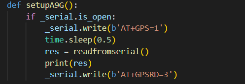 La troisième section du code envoie quelques commandes AT de base à la carte GPS pour qu'elle commence à transmettre ses données GPS en série.